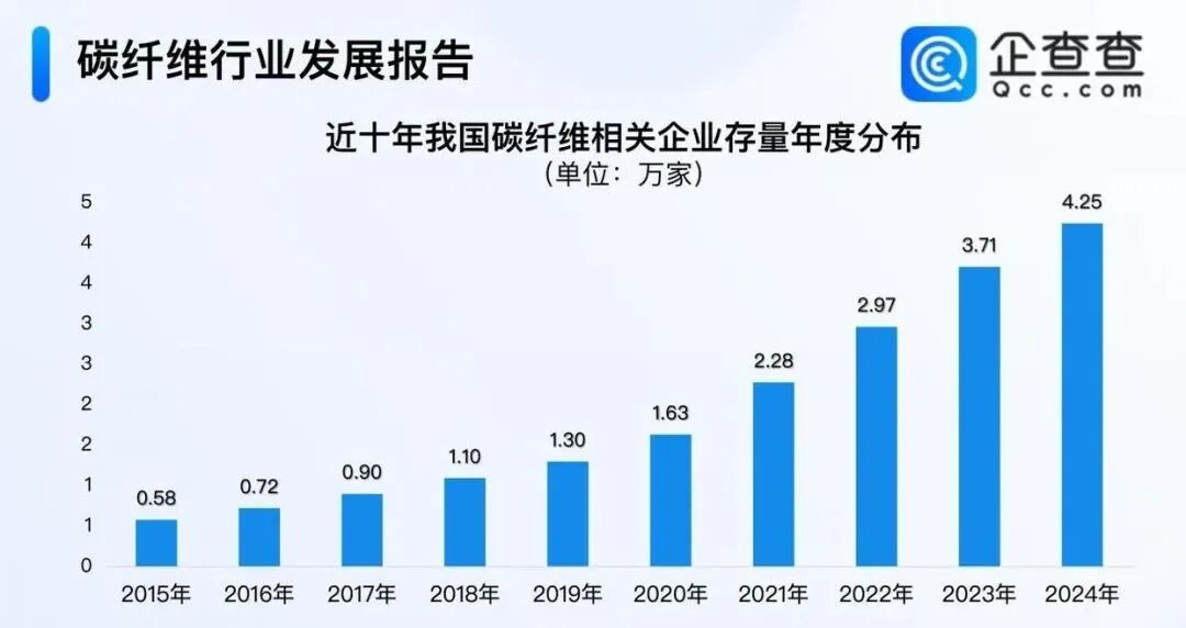 在当今时代,低空经济正以迅猛之势加速爆发,成为推动经济发展与科技创新的全新增长极。在低空经济所涵盖的众多关键领域中,飞行器轻量化的重要性愈发凸显,已然成为左右低空经济能否实现高质量、可持续发展的核心考量因素。 随着低空领域的不断拓展,诸如城市空中交通、物流配送、应急救援等多样化应用场景对飞行器的性能提出了更为严苛的要求。而飞行器的重量直接关系到其能耗、续航里程、有效载荷以及运营成本等关键指标。为了满足这些日益增长的需求,实现飞行器的轻量化迫在眉睫。 在众多可用于飞行器减重的材料中,碳纤维复合材料脱颖而出,凭借自身一系列极为突出的性能优势,当之无愧地成为实现飞行器减重目标的首选战略材料。碳纤维复合材料具备令人瞩目的轻质特性,其密度显著低于传统金属材料,这使得在构建飞行器结构时,能够在保证强度和稳定性的前提下,大幅减轻飞行器的整体重量。与此同时,该材料还拥有高强度的卓越性能,能够承受飞行器在飞行过程中所面临的各种复杂应力,为飞行器的安全可靠运行提供坚实保障。 以新兴的电动垂直起降飞行器(eVTOL)为例,碳纤维复合材料在其中的应用程度令人惊叹。在 eVTOL 的机身结构设计中,碳纤维复合材料的使用占比达到了机身结构重量的 70% 以上。这一极高的占比充分彰显了碳纤维复合材料在 eVTOL 领域的核心地位。通过大规模应用碳纤维复合材料,eVTOL 得以实现机身重量的有效降低,进而显著提升了能源利用效率,增加了续航里程,扩大了其运营服务范围。此外,减重后的 eVTOL 在垂直起降过程中所需的能耗更低,能够更加灵活地适应城市复杂的低空环境,为城市空中交通的高效、便捷运行奠定了坚实基础。 不仅如此,碳纤维复合材料的广泛应用还对整个低空经济产业链产生了深远影响。在材料研发与生产环节,持续的技术创新推动了碳纤维复合材料性能的不断优化和生产成本的逐步降低,促使更多企业投身于该领域的研发与生产,形成了良好的产业发展生态。在飞行器制造领域,碳纤维复合材料的应用促使制造工艺不断革新,高精度、高效率的复合材料成型技术得到了快速发展,进一步提升了飞行器的制造质量和生产效率。而在下游应用市场,轻量化的飞行器凭借其出色的性能表现,吸引了更多客户的关注与青睐,激发了市场对低空经济相关服务的强劲需求,有力地推动了低空经济产业规模的快速扩张。 可以预见,随着科技的不断进步与创新,碳纤维复合材料在飞行器轻量化领域的应用前景将更加广阔。其在性能提升、成本控制以及与其他先进技术融合等方面的持续突破,将为低空经济的蓬勃发展注入源源不断的强大动力,助力低空经济在未来的发展浪潮中创造更加辉煌的成就,开启人类交通与经济发展的全新篇章。 根据预测,2024年到2030年,eVTOL对碳纤维复合材料的需求年均复合增长率将达69%。碳纤维有望在需求增长与自身优势推动下,迎来可观的增量空间。 数据显示,截至2025年3月10日,我国现存4.3万家碳纤维相关企业,其中归属科学研究和技术服务业的企业最多,占比36.1%;注册资本区间分布上,我国碳纤维相关企业注册资本相对均匀,注册资本分布在100万元以内、100万元(含)-200万元、1000万元(含)-5000万元的企业,分别占比29.1%、21.4%、17.5%。 从企业存量来看:我国现存4.3万家碳纤维相关企业 企查查数据显示,近十年,我国碳纤维相关企业存量逐年增加,并于2021年首次突破2万家,达2.28万家;截至2024年12月31日,我国碳纤维相关企业存量已超4万家,达4.25万家。截至2025年3月10日,我国现存4.30万家碳纤维相关企业。 从行业分布来看:科学研究和技术服务业占比36% 企查查数据显示,行业分布上,我国在业存续的碳纤维相关企业中,归属科学研究和技术服务业的企业最多,有1.55万家,占比36.1%,其次是归属批发和零售业的企业,有1.33万家,占比31.0%;归属制造业的碳纤维相关企业有0.70万家,占比16.2%。 从注册资本来看:200万元以内的企业占比超50% 数据显示,我国碳纤维相关企业注册资本区间分布相对均匀,注册资本在100万元以内的企业最多,占比29.1%;其次是注册资本在100万元至200万元之间的企业,占比21.4%,注册资本在200万元以内的企业合计占比超五成;注册资本在1000万元至5000万元之间的企业占比17.5%。
