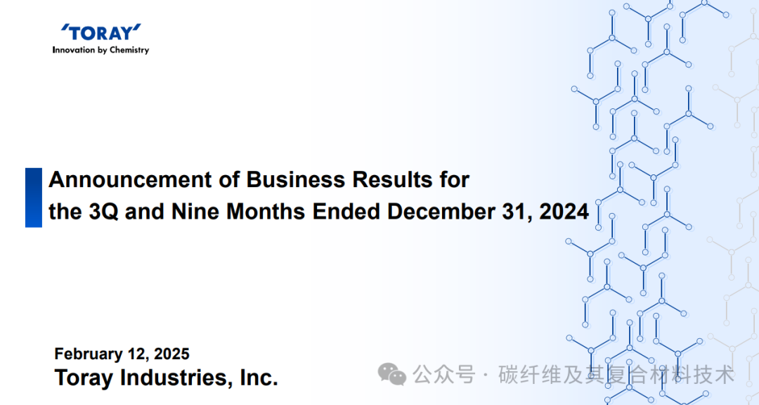 2月12日,日本东丽公司发布2025财年前三季度(2025财年指从2024年4月到2025年3月为周期,2025财年前三季度为2024年4月1日-2024年12月31日)业绩报告,2025财年前三季度公司核心营业收入大幅增长40.9%,而从具体碳纤维复合材料板块来看,得益于航空航天领域用碳纤维销售同比增长23%,公司碳纤维复合材料板块核心营业收入增长了24%。 2025财年前三季度公司业绩及碳纤维复合材料板块情况 2025财年前三季度从全球经济角度而言,美国保持强劲增长,欧洲重拾复苏态势。中国经济虽持续低迷,但经济刺激措施的效果也在一定程度上显现,日本经济继续保持渐进复苏。 在上述宏观背景下,东丽集团自2023财年起,一直在推进其新的中期管理计划AP-G 2025项目,通过实施可持续增长、终端价值创造、产品和卓越运营、加强以人为本管理和风险管理和治理五大基本战略,旨在实现健康可持续增长。 截至2024年12月31日的九个月合并财报显示,公司营收同比上涨5.2%,达到1.9239万亿日元,核心营业收入大幅增长40.9%,达到1088亿日元;母公司所有者应占利润飙升64.6%,达到752亿日元。 在碳纤维复合材料业务板块上,受近期库存调整影响,航空航天领域应用的复苏步伐有所放缓,但风力涡轮机叶片应用保持逐步回升态势,东丽公司2025财年前三季度公司碳纤维复合材料板块整体收入增长了6.7%,达到2232亿日元;核心营业收入增长了24.1%,达到141亿日元。 东丽公司2025财年前三季度碳纤维板块综述 2025财年前三季度,东丽母公司碳纤维复合材料业务营收791亿元,与2024年同期686日元相比,同比增长了15.3%;与此同时,东丽公司日本子公司和海外子公司的营收同比则变化不大;但是在核心营业收入上,东丽日本子公司和东丽海外子公司核心营收分别大幅增长58.9%、90.4%。 报告期内,日本东丽公司主要亮点:2024年11月4日,日本东丽子公司东丽先进复合材料(Toray Advanced Composites)公司宣布,通过收购位于科罗拉多州Englewood的Gordon Plastics公司的资产、技术和知识产权,扩大其连续纤维增强热塑性复合材料产品范围。通过此次投资并购,东丽先进复合材料公司进一步扩大了连续纤维增强热塑性复合材料单向带的开发、测试和生产能力,并增强了东丽加工更高熔融温度聚合物体系的能力(更多内容详细阅读《再扩产!东丽先进复材公司通过企业并购扩大连续纤维热塑性复合材料的产能》)。 在具体的应用领域板块上,2025财年前三季度东丽公司航空航天领域用碳纤维复合材料销售收入774亿日元,占总销售35%,同比增幅高达23%;体育休闲领域用碳纤维复合材料销售收入220亿日元,占总销售10%,同比增长8%。 值得关注的是在工业领域,2025财年前三季度东丽公司工业领域用碳纤维复合材料销售收入1238亿日元,占总销售55%,与2024年同期1262亿日元相比,仅仅下降2%。 就各应用终端领域的具体季度销售业绩而言,2025财年航空航天、体育休闲领域用碳纤维复合材料前三季度与去年同期相比均出现明显提升,比如2025财年第一季度航空航天领域销售275亿日元,同比增长54.5%,而第二季度该领域销售259亿日元,同比增长19.4%;而工业领域业务2025财年第三季度同比小幅上涨,可能与风电叶片市场复苏有关。 东丽公司2025财年碳纤维板块业务预测 基于前三季度碳纤维板块业务的良性增长,因此,东丽公司预测2025财年碳纤维板块业务全年营收为3040亿日元,与2024财年全年2905亿日元相比,增幅有望达到13.5%。