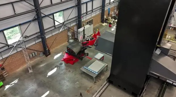 你可以把它想象成类似于一台 39 英尺(12 米)高、75 吨重的自主式 3D 打印机,它能以每分钟 328 英尺(100 米)的速度打印出碳纤维层。它不是"打印"部件,而是将碳纤维片一层一层地向不同方向铺设,以增强每个结构的强度和刚度。AFP 的横向移动能力可达 98 英尺(30 米),因此完全有能力铺设最大的部件--91 英尺(28 米)长的中子火箭中间级和整流罩。
